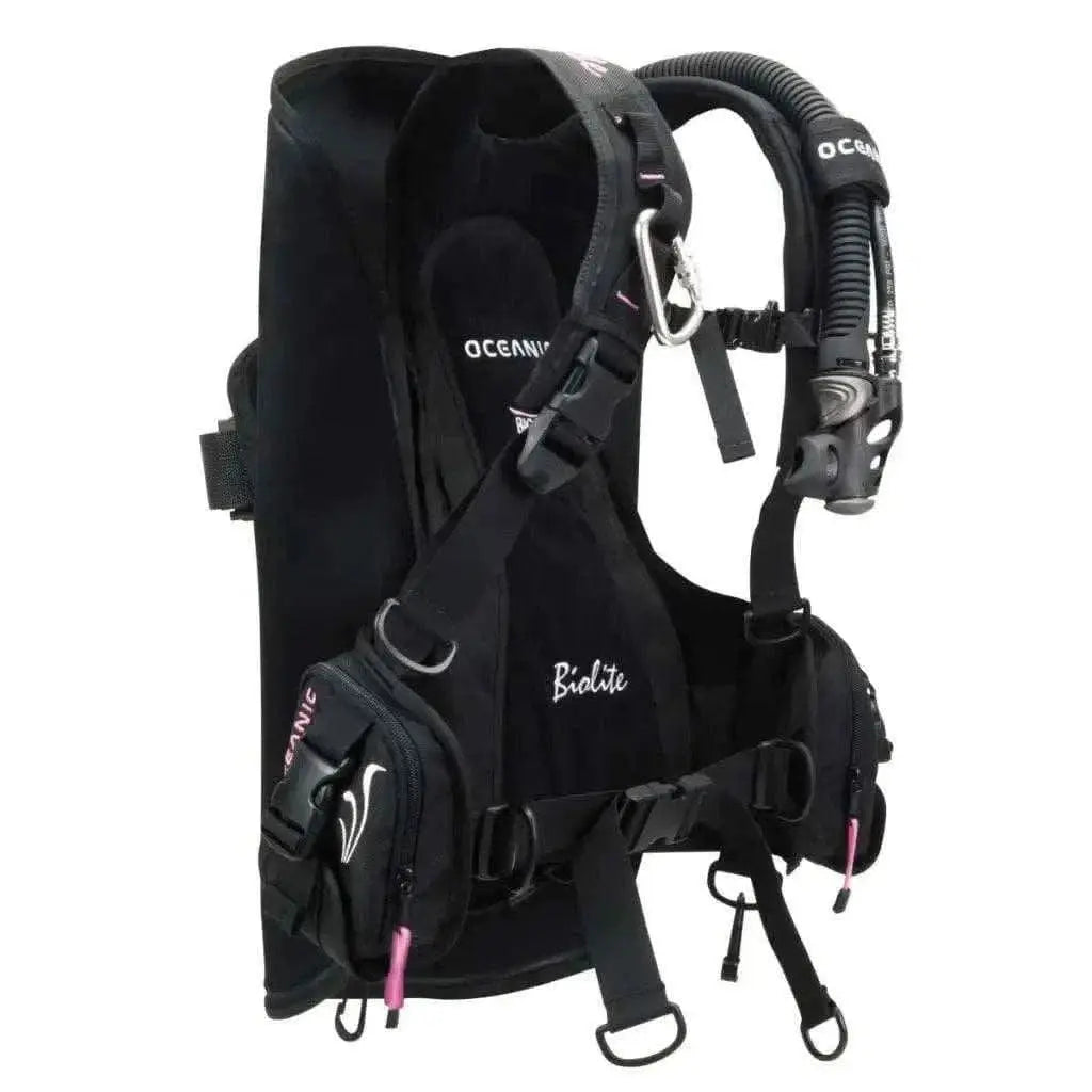 Das Biolite ist mit verstellbaren Schultergurten und einem selbstjustierenden Brustgurt ausgestattet, der mit einer Sicherheitspfeife ausgestattet ist. Das stromlinienförmige, integrierte Gewichtssystem kann bis zu 6,4 kg in zwei vorderen Gewichtstaschen von je 3,2 kg aufnehmen. Das Quick-Drop-Gewichtsabwurfsystem ist einfach zu beladen und zu bedienen. Zusätzlich gibt es zwei (für 2,3 kg) Nicht-Abwurf-Gewichtstaschen am Flaschengurt, die auch unter Wasser für Stabilität sorgen.