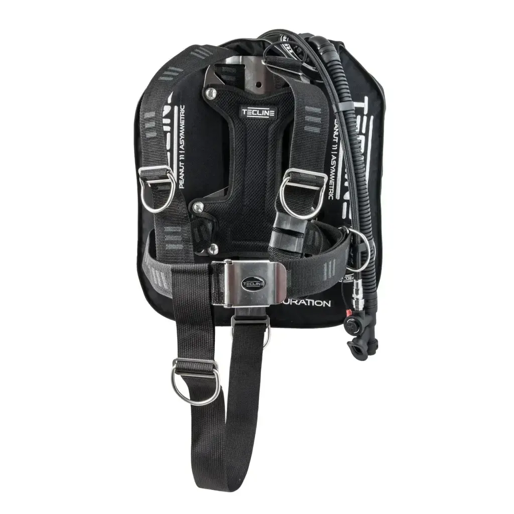 Entdecken Sie die Welt des Tauchens mit dem zuverlässigen Tecline DIR-Set MINI 1: Peanut 11. Perfekt für kleine Abenteurer – sicher, leicht und langlebig!