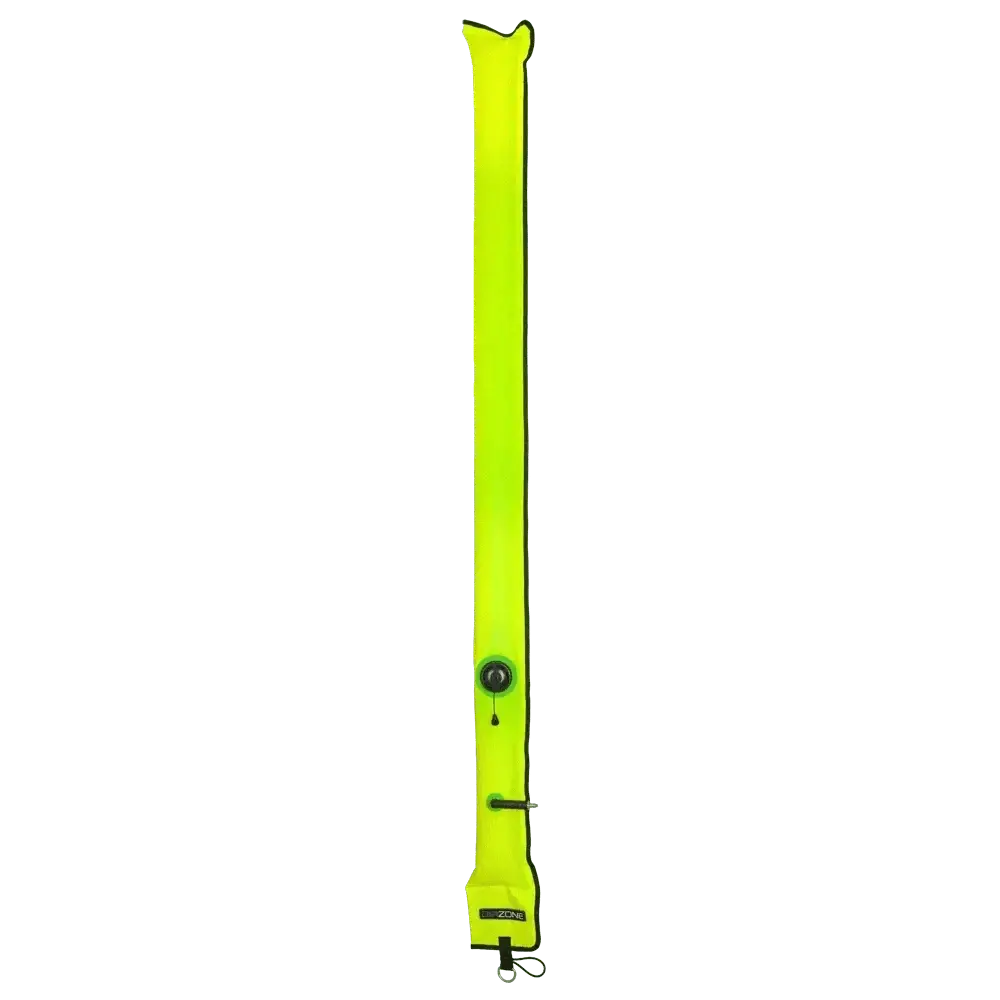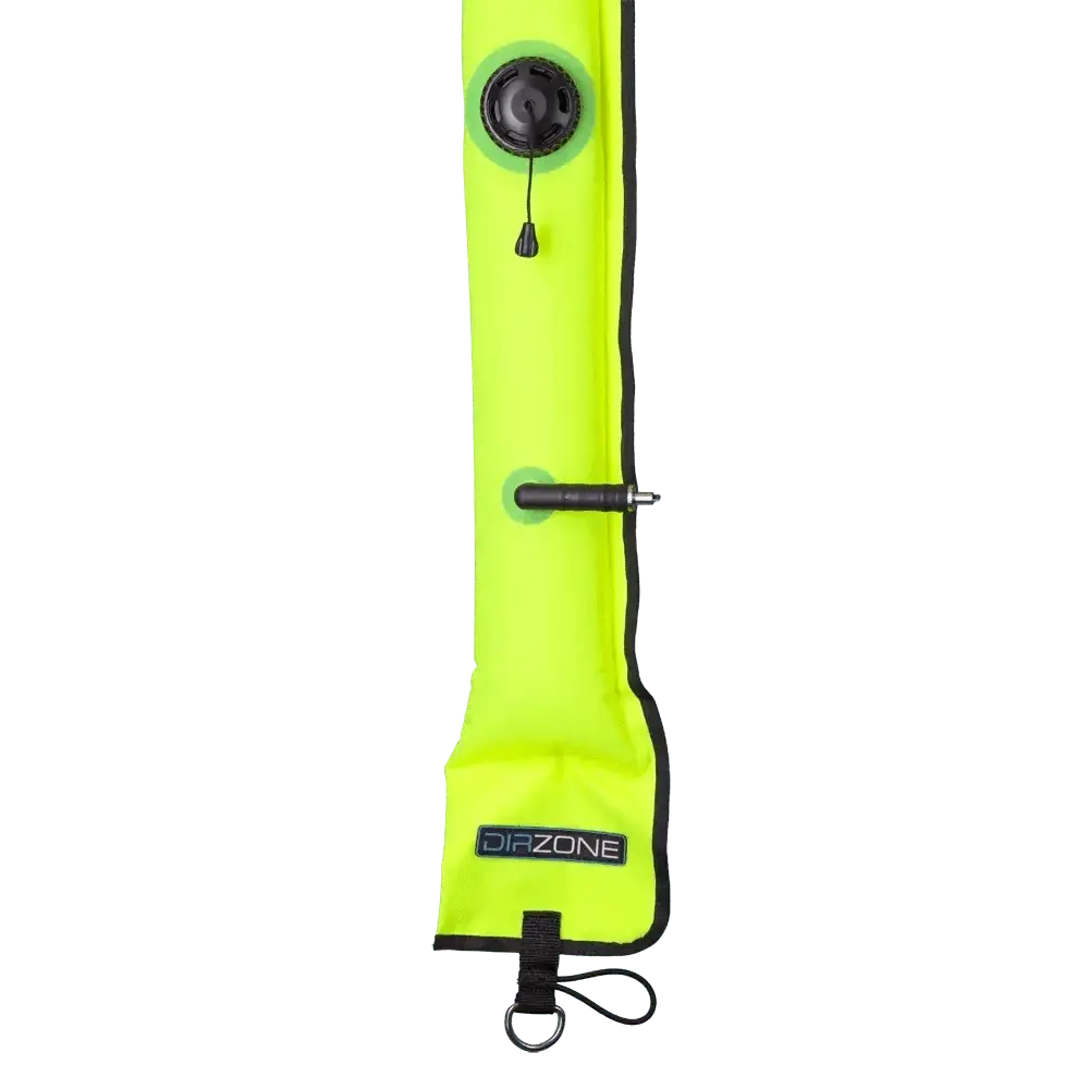 Das leuchtende **Gelb** des DIRZONE Alert Marker 180cm PRO YELLOW gewährleistet höchste Sichtbarkeit – perfekt für **Bootstauchgänge**, Strömungen oder Deko-Stops. Die **Profi-Deko-Boje** falten sich kompakt zusammen und sind sofort einsatzbereit. Mit einer Länge von ca. 1,75–2 m ragt sie weit aus dem Wasser heraus und signalisiert Ihre Position zuverlässig.