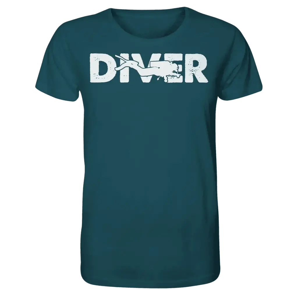 Diver - Taucher - Organic Shirt ist ein hochwertiges Bio-Baumwoll-Shirt für Taucher und Meeresfreunde, das Komfort, Nachhaltigkeit und maritimes Design vereint.
