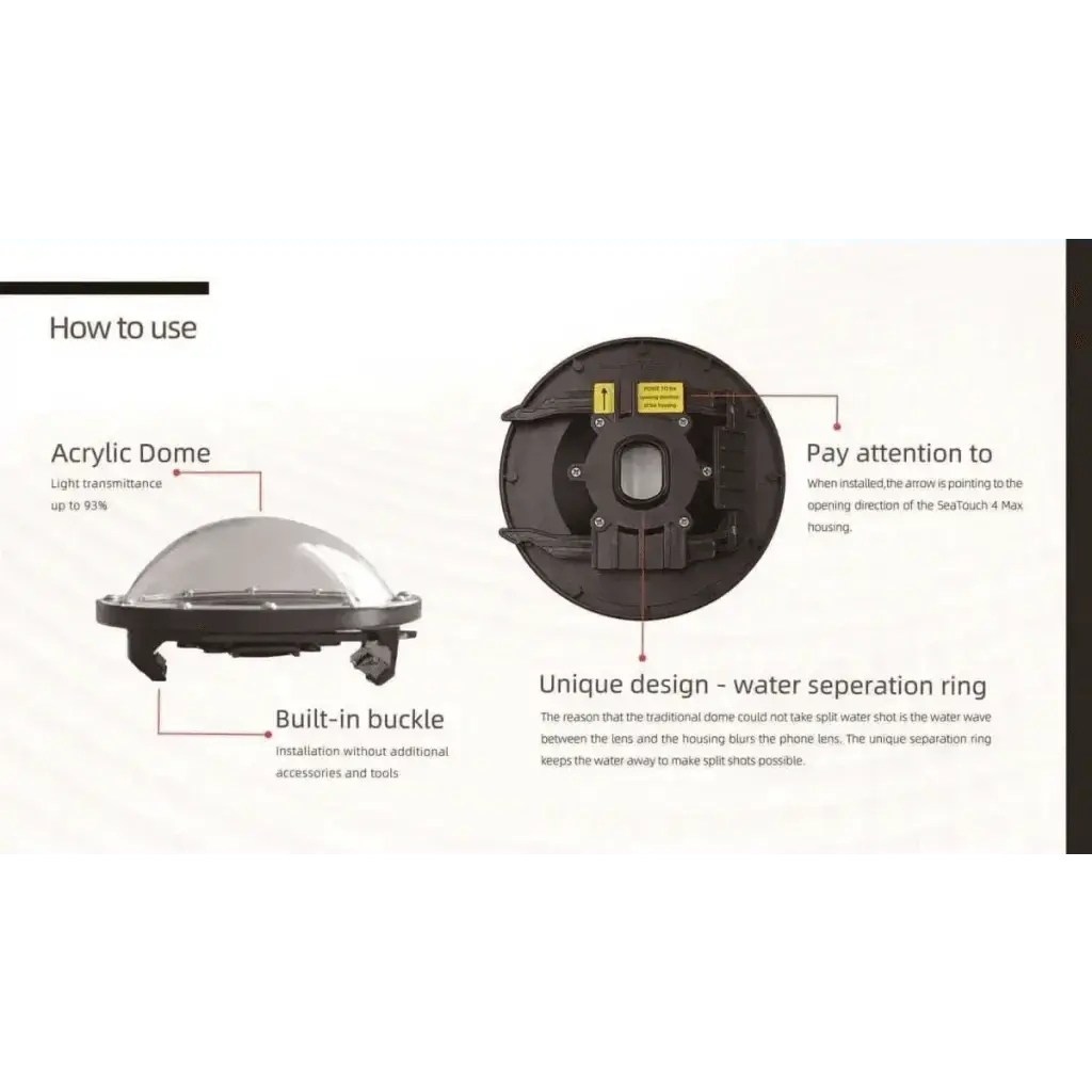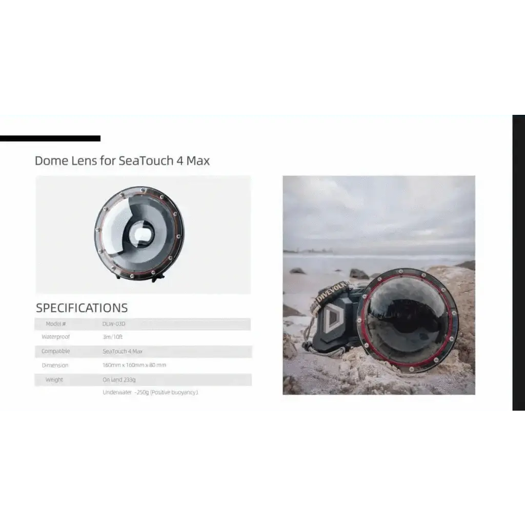 Entdecken Sie die DiveVolk Dome Lens, die revolutionäre Weitwinkel-Linse für Ihr SeaTouch 4 Max Unterwassergehäuse. Mit innovativer Technologie erobern Sie die Unterwasserwelt in gestochen scharfer Qualität und fangen atemberaubende Momente ein.