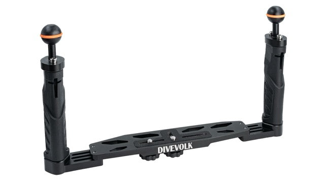 Entdecken Sie den Divevolk Unterwasser Doppelhandgriff, Ihr zuverlässiger Partner für stabile und professionelle Unterwasserfotografie und -videografie. Dieses hochwertige Tray-System aus Aluminium sorgt für sicheren Halt und optimale Bedienung Ihres Tauchgehäuses wie dem SeaTouch 4 Max – ideal für leidenschaftliche Taucher.
