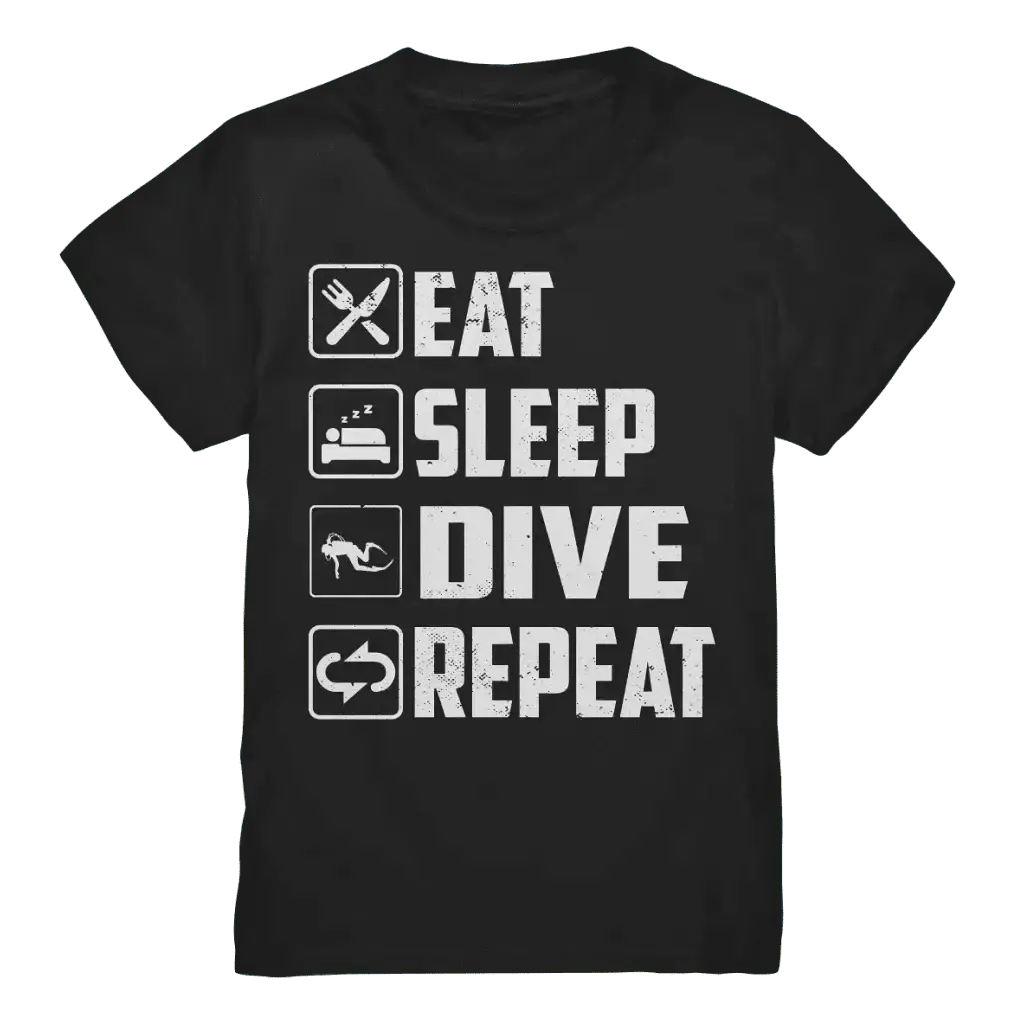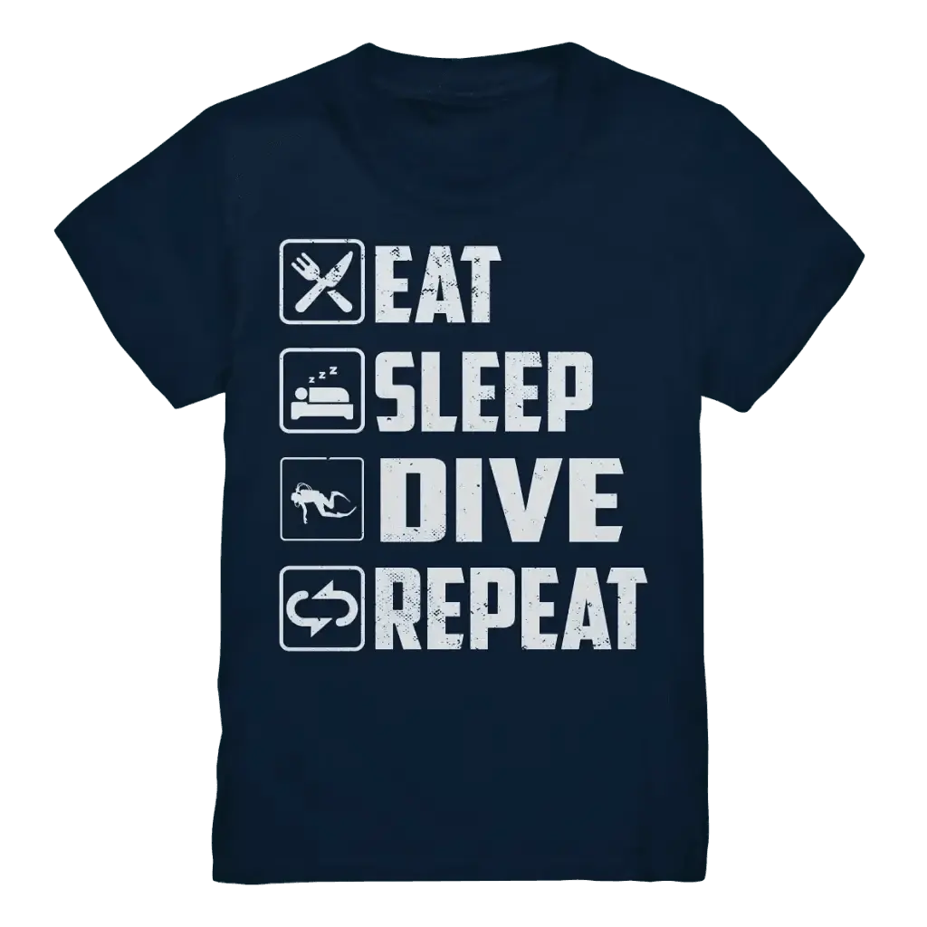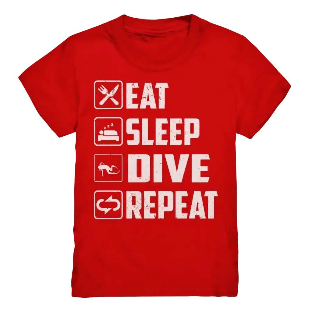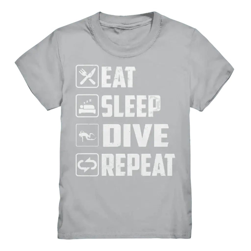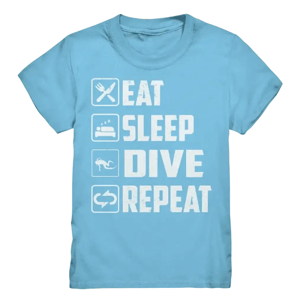 Bestelle jetzt dein Eat Sleep Dive Repeat Shirt und lass dein Kind die Tauchleidenschaft ausleben!