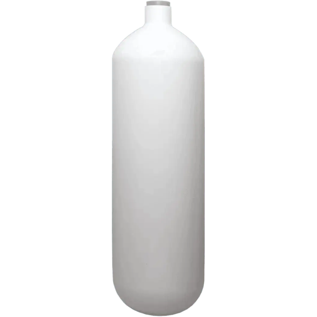 Kompatakter 5‑Liter Stahlflasche für Taucher – die ECS Steel Tanks white 5l 232bar 140mm bietet hohe Fülldruck‑Kapazität in einem schlanken, robusten Gehäuse und ist ideal für Tauchgänge, Reise‑ oder Stage‑Einsätze.