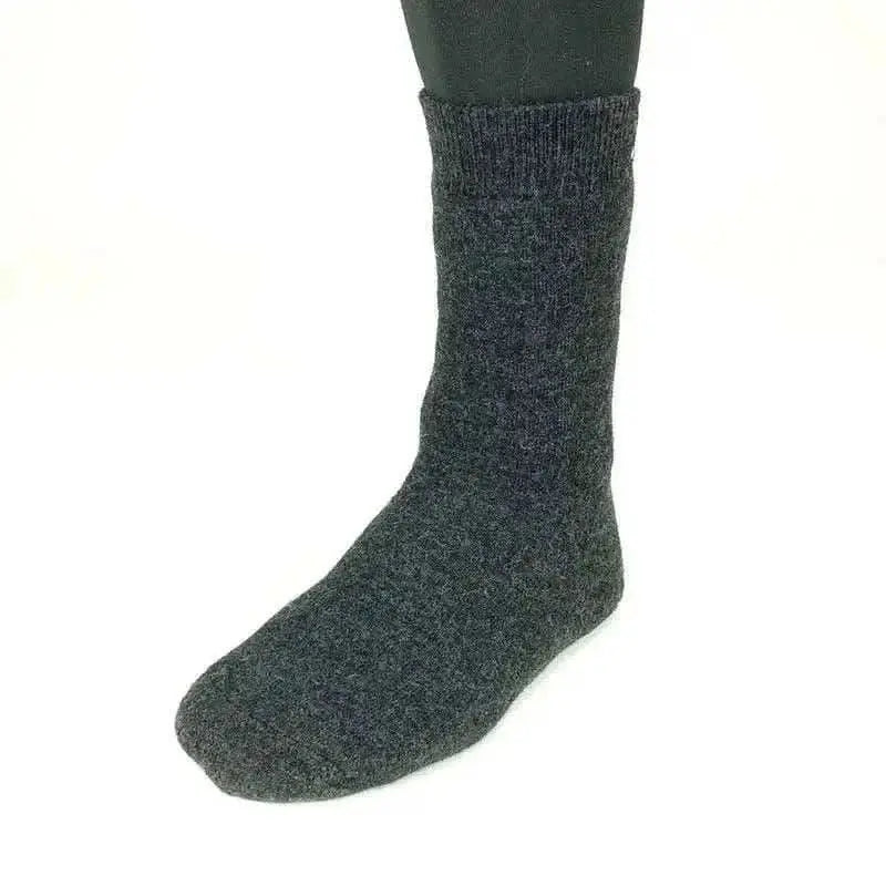 Verdichtetes Material / Walkprozess: Nach dem Stricken durchläuft die Socke einen speziellen Walkprozess, der das Material verdichtet und eine dicke, stabile Struktur erzeugt.