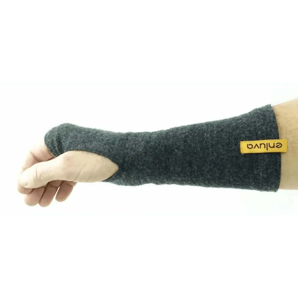 Enluva „wrist“ Pulswärmer sind aus reiner Merinowolle fein gestrickt, in höchster, nahtloser, Verarbeitungsqualität mit beidseitigen Abschlussbündchen.