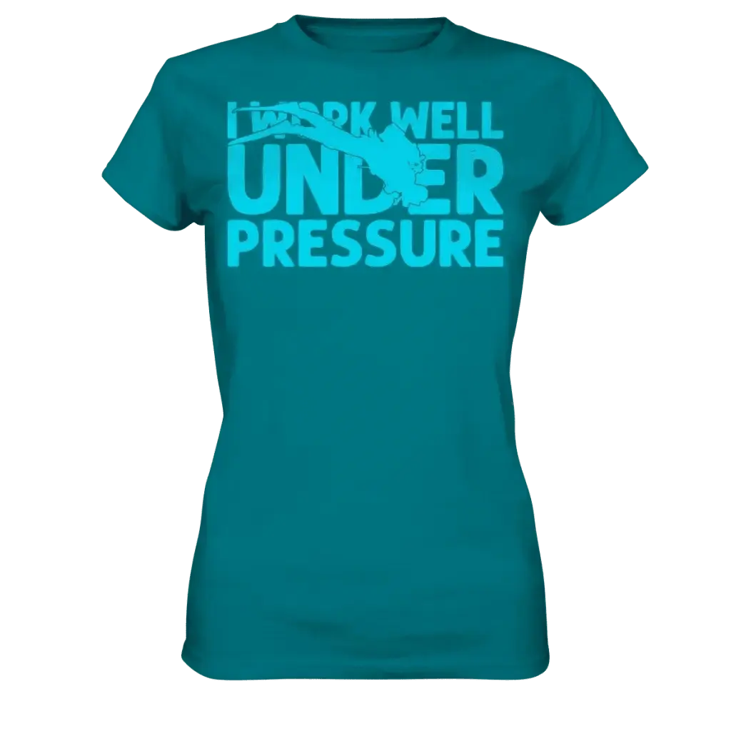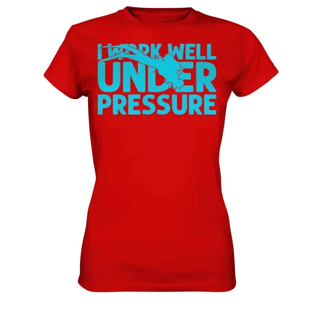 Das I work well under pressure - Ladies Premium Shirt von Tauchwerkstatt.eu ist das perfekte Statement-Shirt für alle Taucherinnen, die den Druck lieben – unter Wasser und im Alltag! Mit dem witzigen Spruch „I work well under pressure“ zeigen Sie Ihren Tauchstil und Ihre Leidenschaft fürs Tauchen.