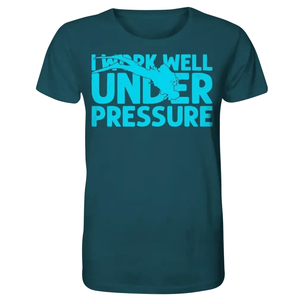 Bestellen Sie Ihr I work well under pressure Organic Shirt jetzt bei Tauchwerkstatt.eu und tauchen Sie ein in Stil und Nachhaltigkeit!