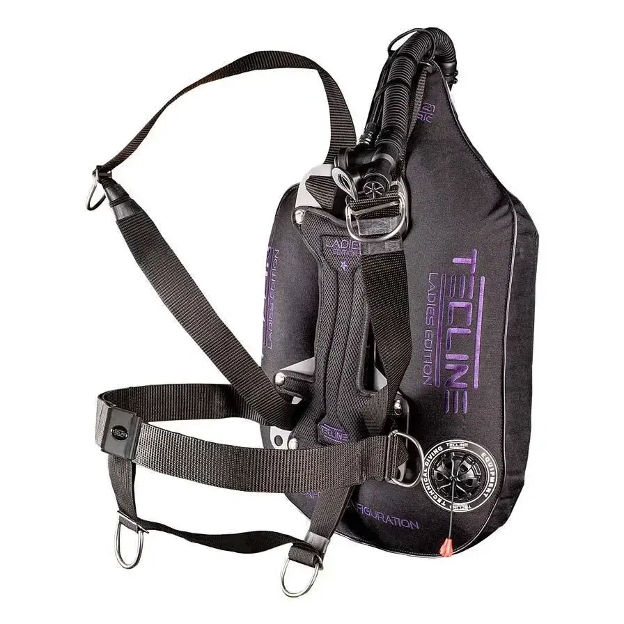 - Lieferumfang (typisch): Wing Peanut 21 Lady, H-Rückenplatte, Harness (Comfort/DIR), 2 Flaschenspanngurte, Rückenpolster mit Bojentasche, LP-Schlauch