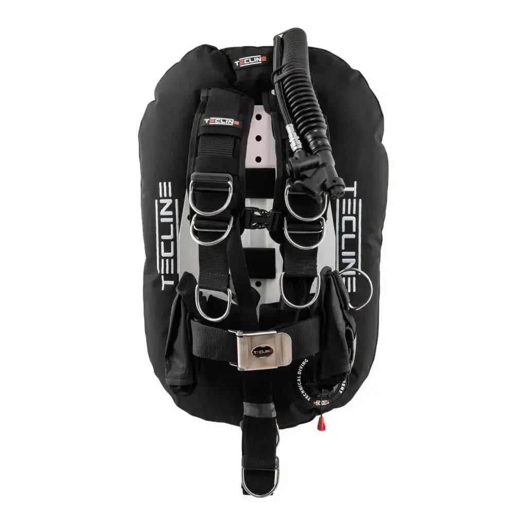 Ultraleichtes Komplett-Set inklusive Donut-Wing, DIR-Harness, 3 mm Aluminium-Backplate, Flaschengurte und Gewichts-/Trimmtaschen.