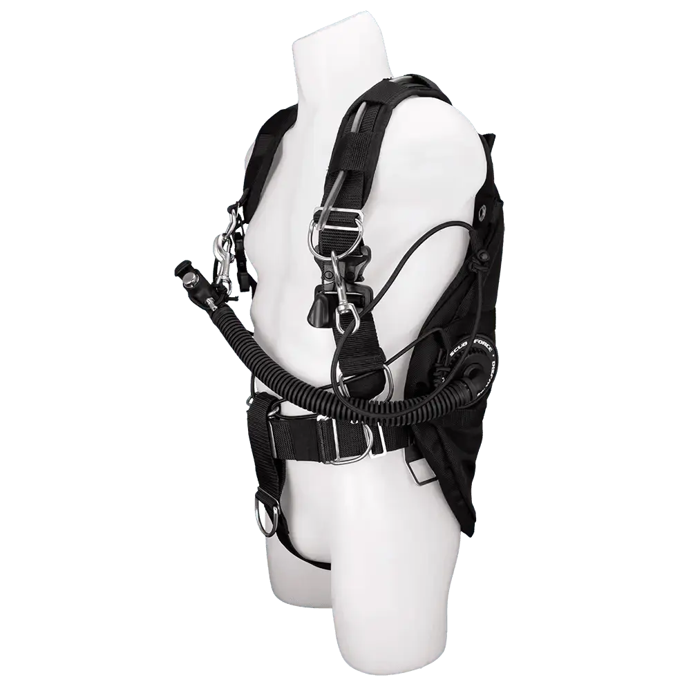 Links und rechts am Soft Pad befinden sich Befestigungspunkte für Argonflaschen oder Akkutanks. Das Comfort Harness basiert auf dem seit langem bewährten SCUBA FORCE Cobra Harness. Die Schnallen verfügen über einen Sicherheits-mechanismus, bei dem das Öffnen nur mit zwei Fingern möglich ist. Diese sind aus einem hochwertigen und temperaturresistenten Polymer gefertigt.
