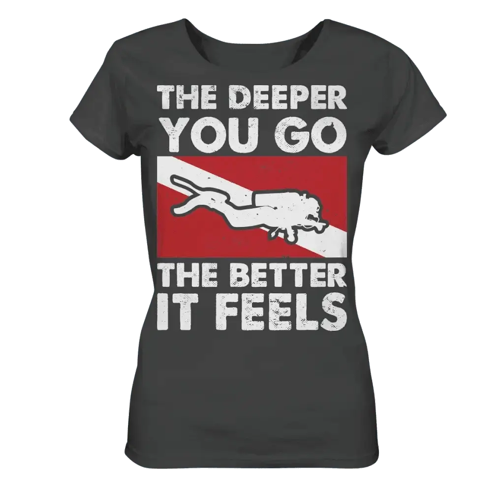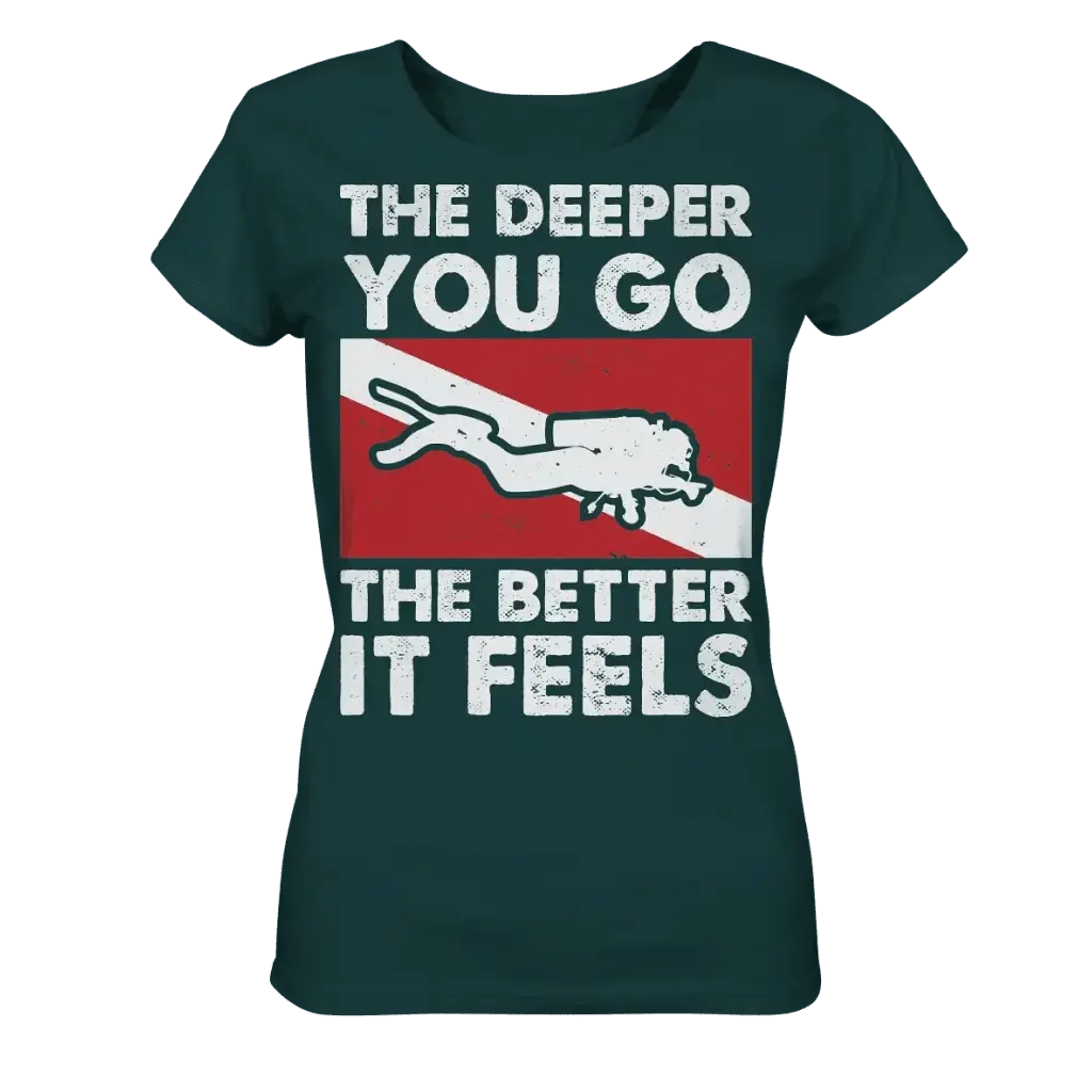 Es ist mehr als ein Shirt – es ist dein Statement für Abenteuer unter Wasser. Bestelle jetzt dein The Deeper you Go the better it feels Shirt und spüre, wie es sich anfühlt, tiefer zu gehen!