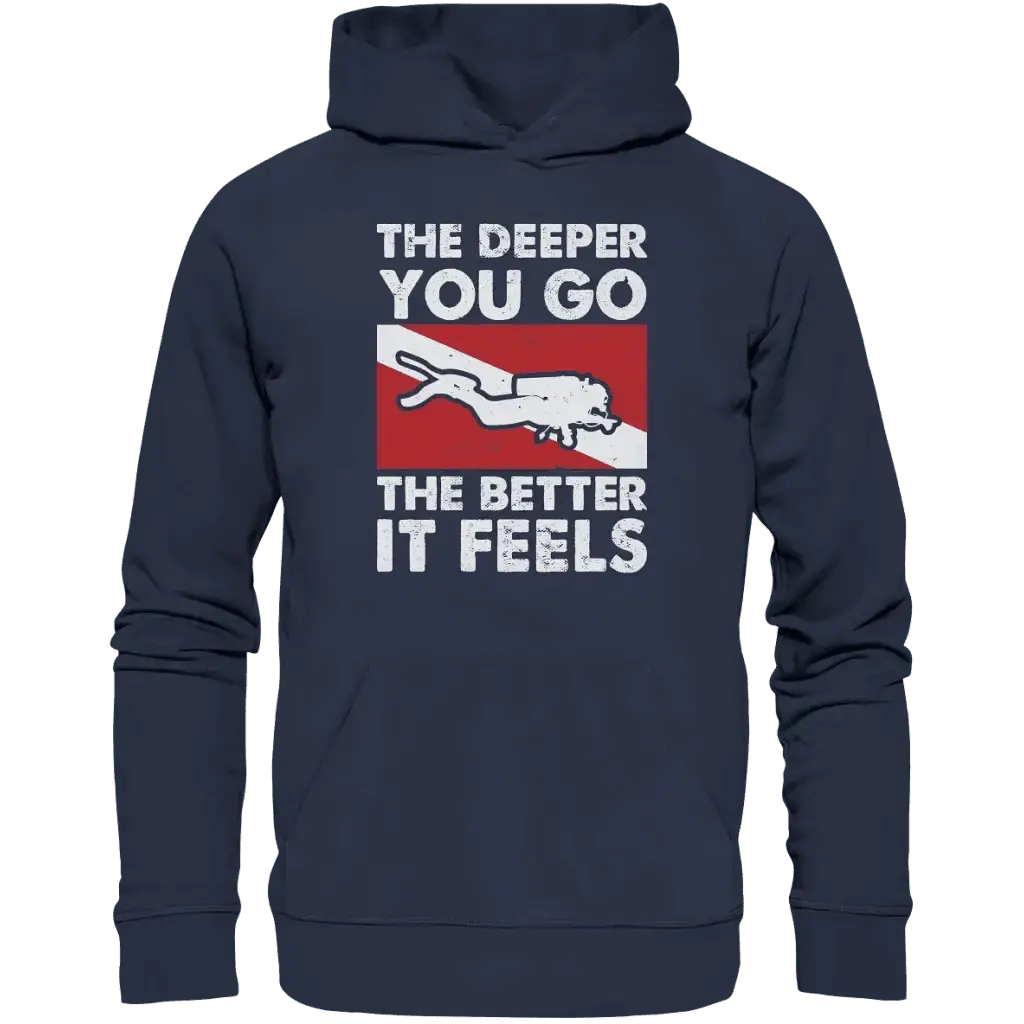 Tauche ein in ultimativen Komfort mit unserem Premium Unisex Hoodie von Tauchwerkstatt.eu. Der motivierende Spruch „The Deeper you Go the better it feels“ macht diesen Hoodie zum perfekten Begleiter für Taucher – ob am Strand, auf dem Boot oder im Alltag.