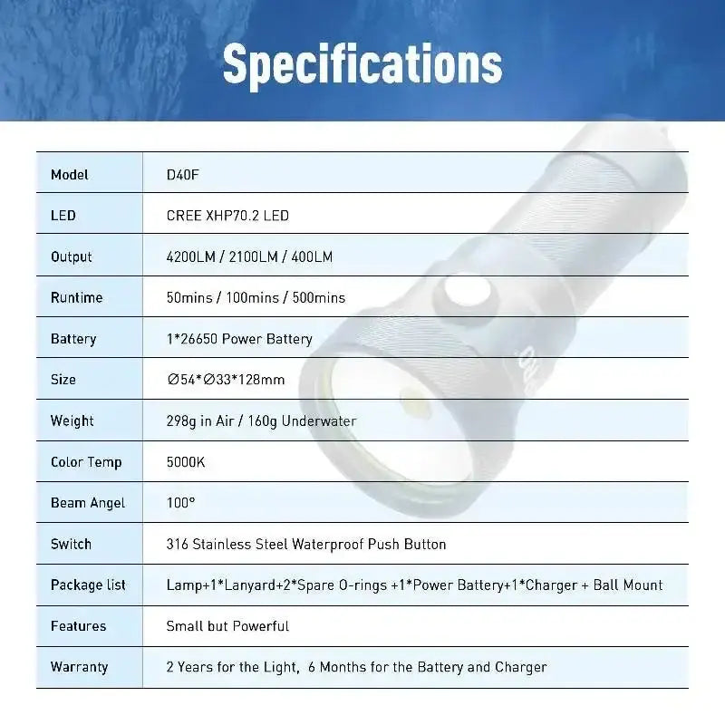 Warum die DIVEPRO D40F Ihre perfekte Tauchlampe ist